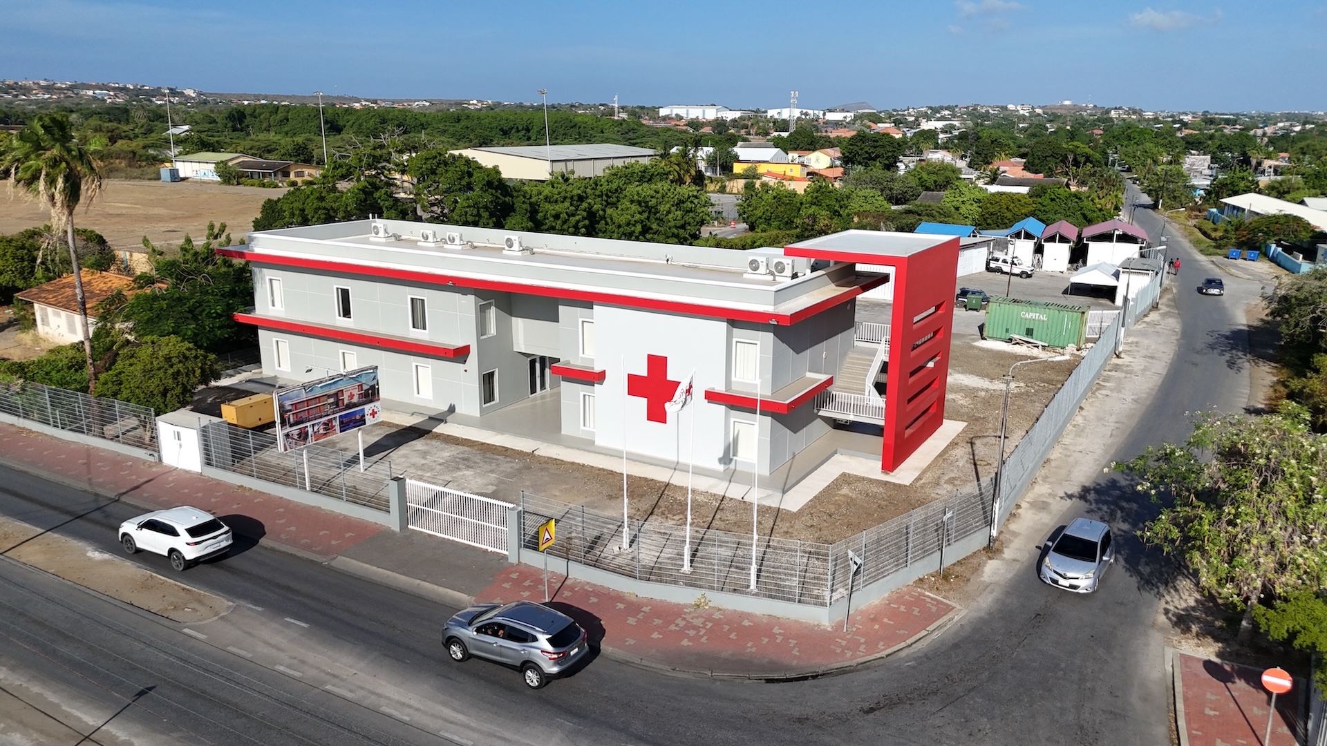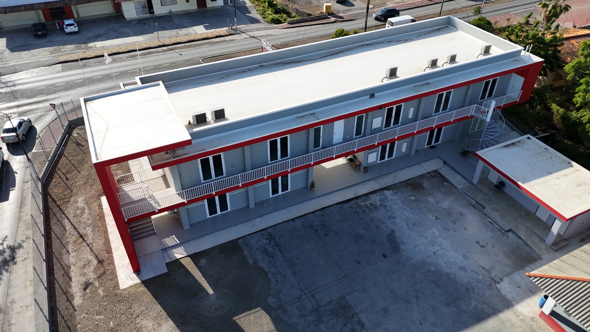 This modern facility reflects both functionality and identity. The bold red cross at the façade is more than a symbol — it is the heart of the building’s design, standing for care, safety, and community. Strong linear forms in gray and white are energized by striking red accents, creating a dynamic and recognizable structure. With practical spaces inside and a design that communicates its mission instantly to the public, this building is a landmark of service and resilience.